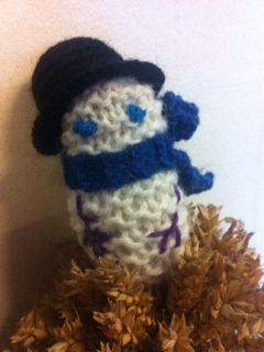 Der var en vildbasse der blev færdig med en strikket snemand, som skulle pakkes ind til moren. Nøj han var stolt! (Denne her er fra sidste uge)