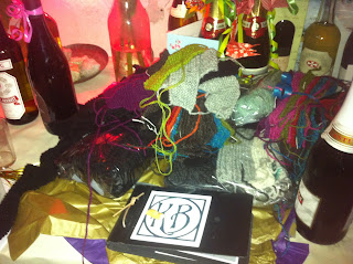 Og så løb jeg tør for garn til Annas One Night Knit montering… og da jeg fandt strikkepindene frem til mit nye års tæppe, faldt snakken på hjemmelavede strikkepinde og du fandt Robert selv- og velgjorte pinde frem. Så kunne jeg i ro og mag strikke en lap til dit tæppe. Den blev noget løs i det, men i det store og hele fik den den rette form.