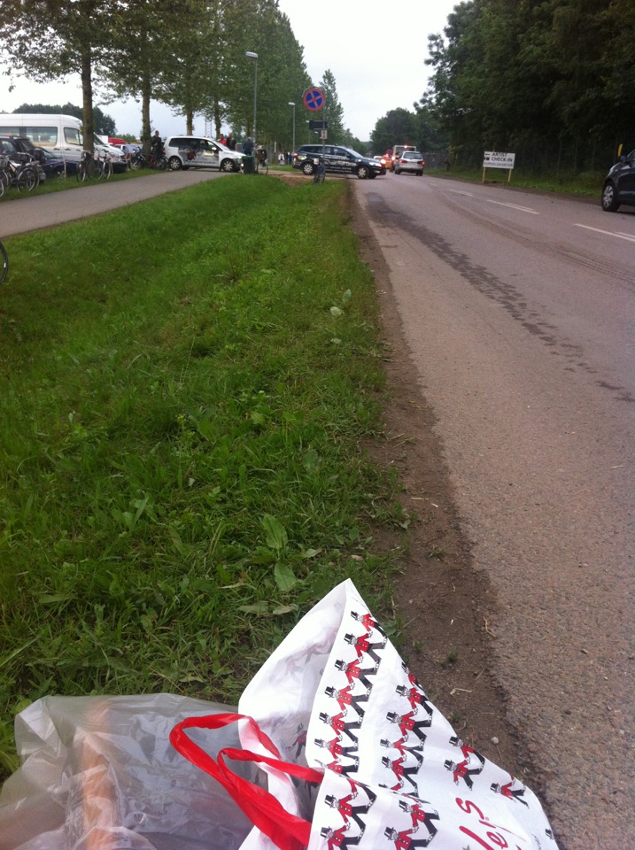 Og så har den trætte og glade “strikperformer” pakket sammen og venter på den kære mand, der godt gad og hente mig. Min tekst til dagens lapper er nok det jeg har skrevet her
