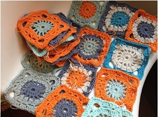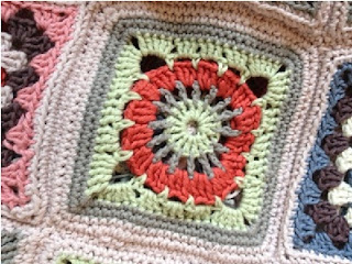 Med mere end adskillige sidespring til strikketøj (det var måske nok mere sådan, at hækleriet var sidespring til strikkeriet) fandt jeg en dag et andet mønster til firkanter og jeg kombinerede mønstrene til nye firkanter – alt for at se, om det kunne tænde ilden og få hæklenålen op i tempo.